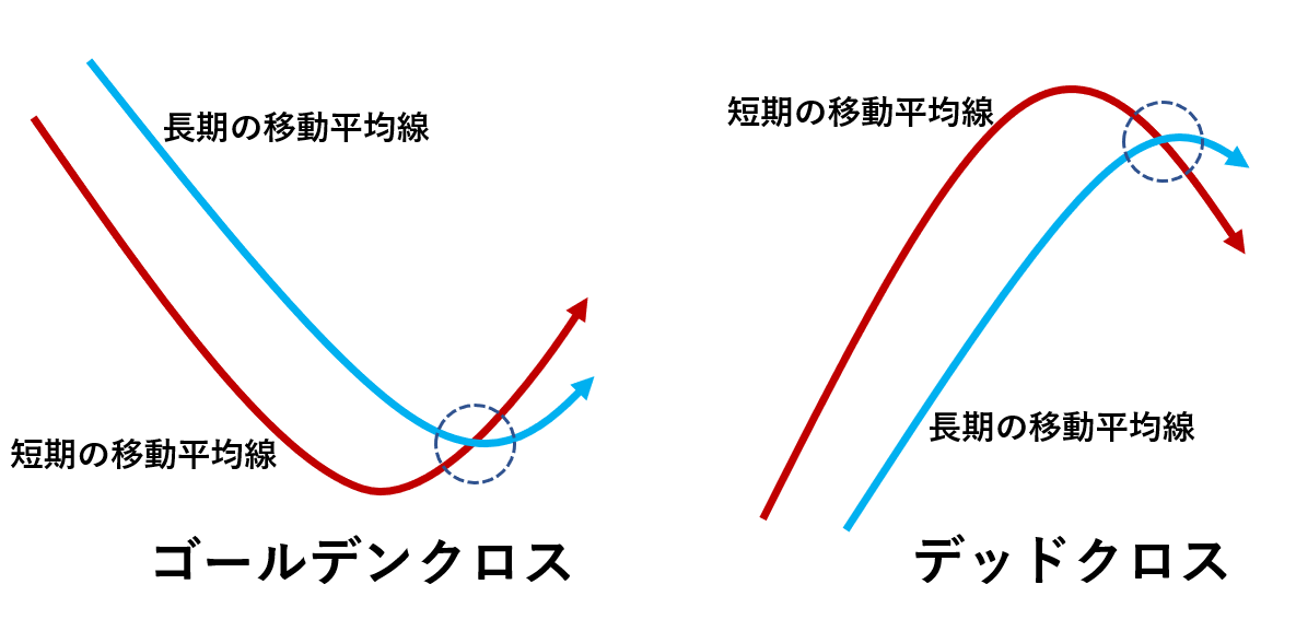 - 短期線が長期線を下抜ける → デッドクロス(売りサイン)