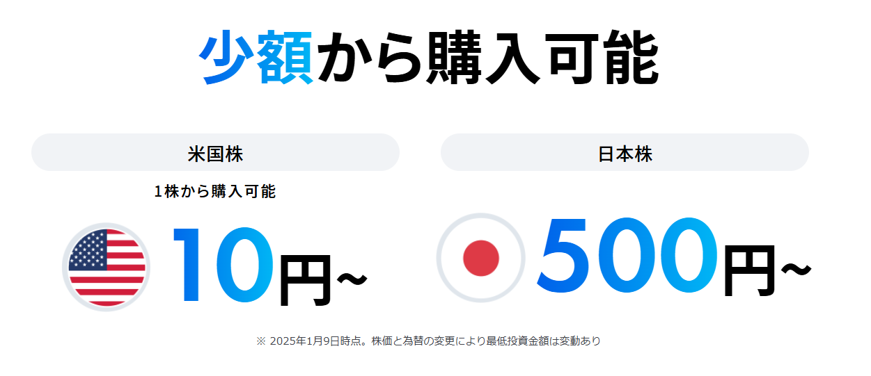 - 取引手数料が無料※条件あり(米国株の少額取引が0円)